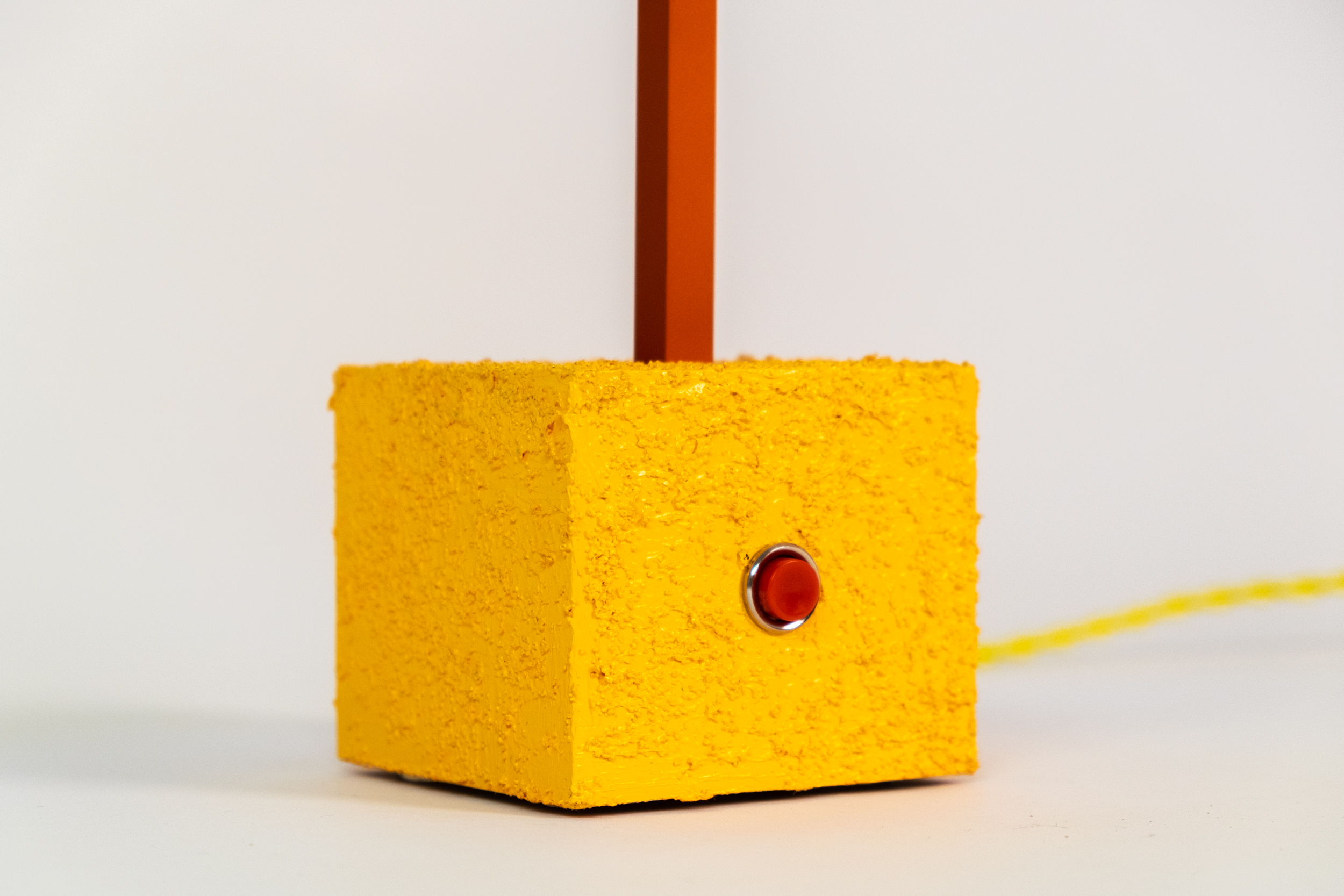Alexander Lamp est un prototype visuel de lampe ambiante pouvant être fabriqué en série avec des matériaux durables. Il utilise un anneau LED pour faire rebondir une lumière rose sur un réflecteur jaune, produisant un effet de teintes chaudes, d'ombres et de silhouettes.