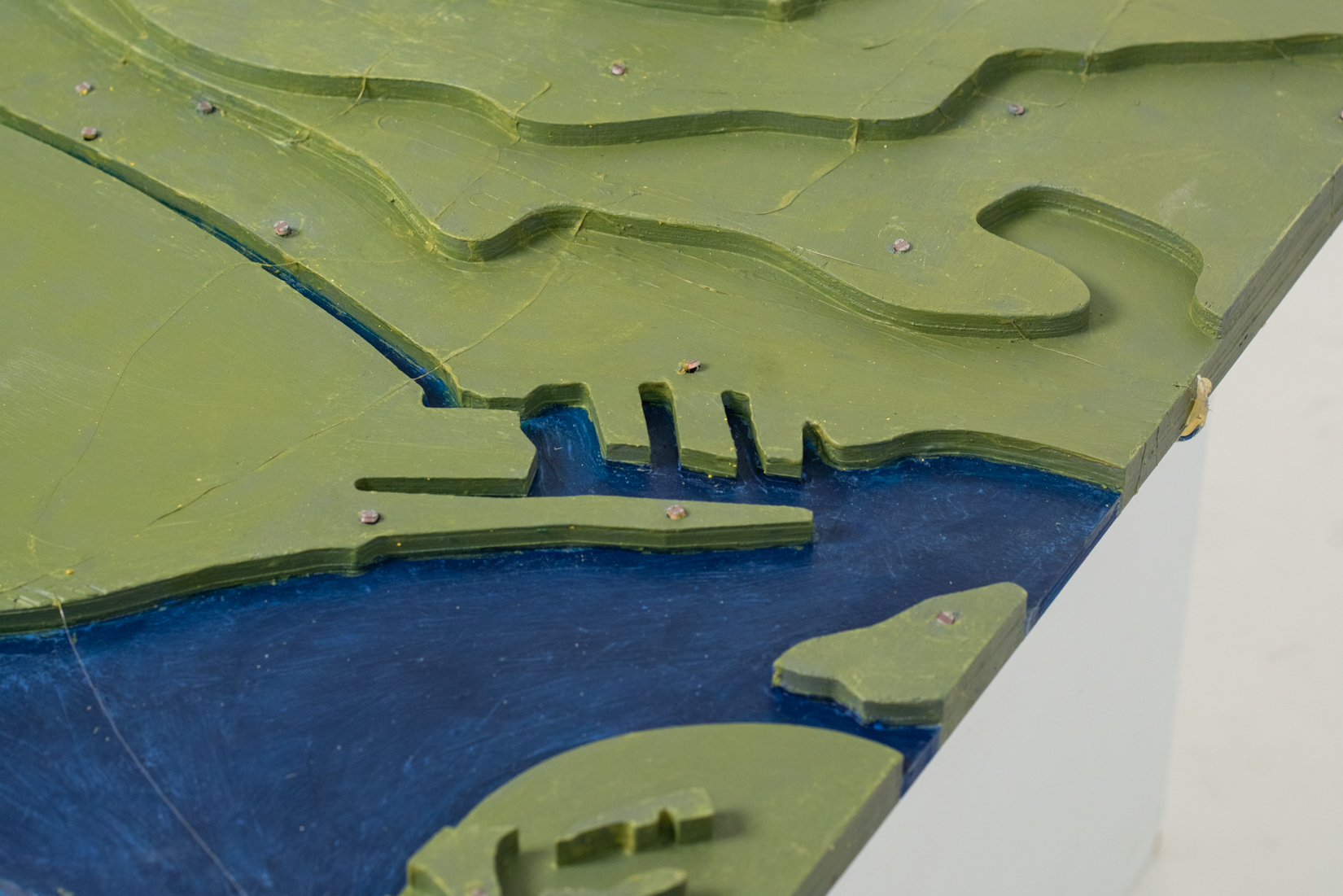 ConcrHeat consists of a three dimensional topographical wooden map of the city of Montreal. The project serves as a commentary on the heat wave experienced during the summer.