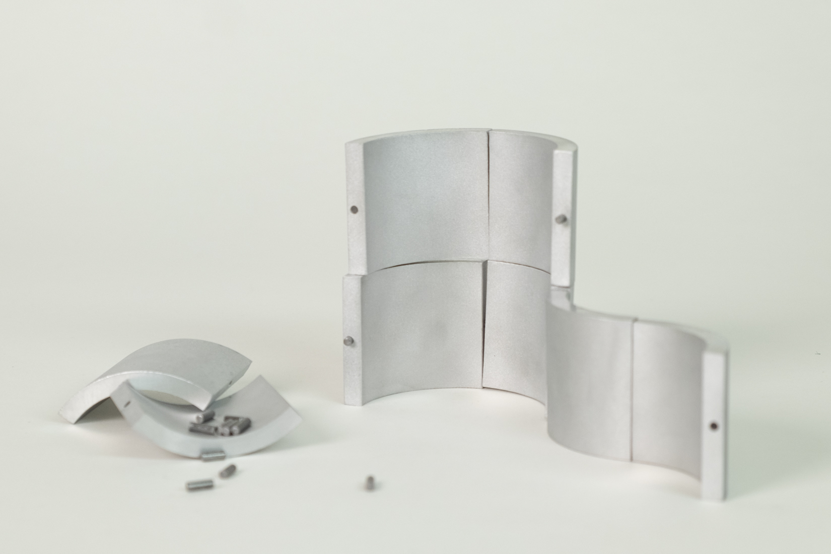 Flexus is a construction toy made of reclaimed aluminum. The curved pieces provide an infinite number of possibilities for the construction of curved forms.
