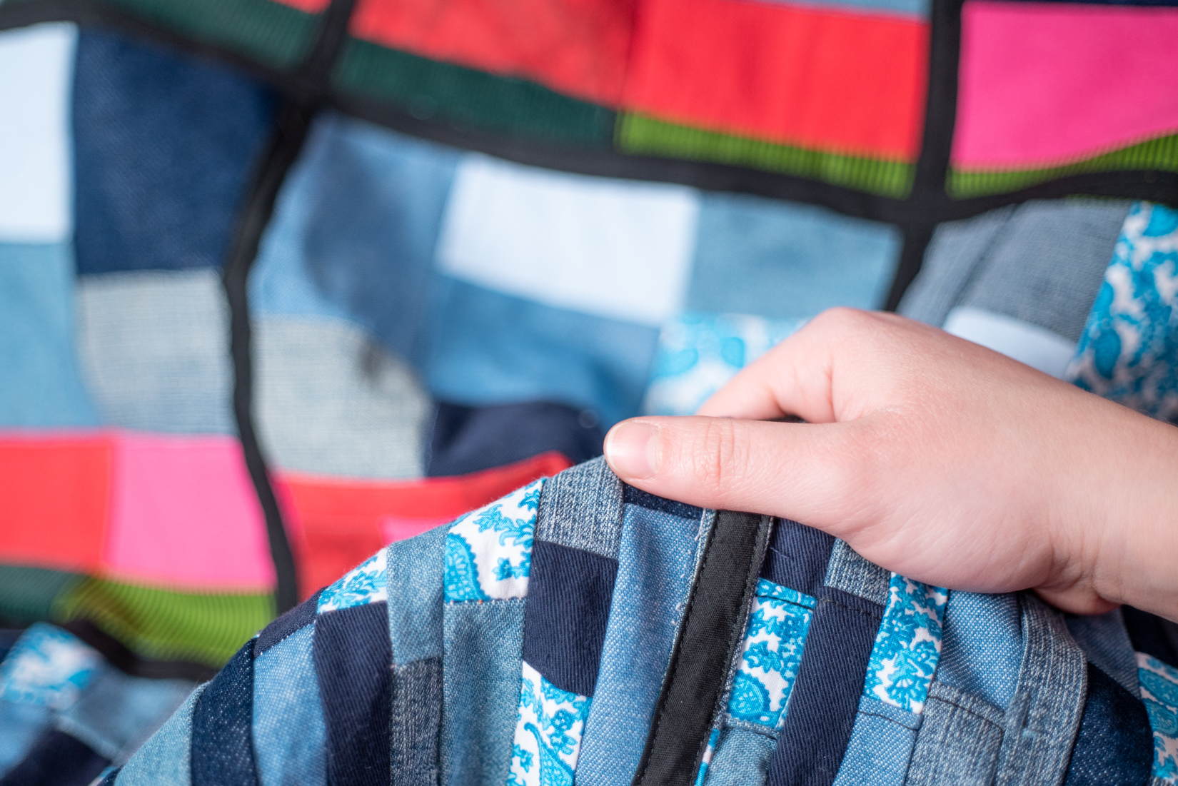 Patchwork Waste est une courtepointe faite à la main composée de vêtements recyclés qui sert à representer visuellement la quantité de textile produit, recyclé, brûlé et mise en décharge au cours des cinq dernières décennies (de 1960 à 2015). La representation de ces données illustre cette réalité profondément troublante de l'augmentation de la production textile au cours des dernières décennies.