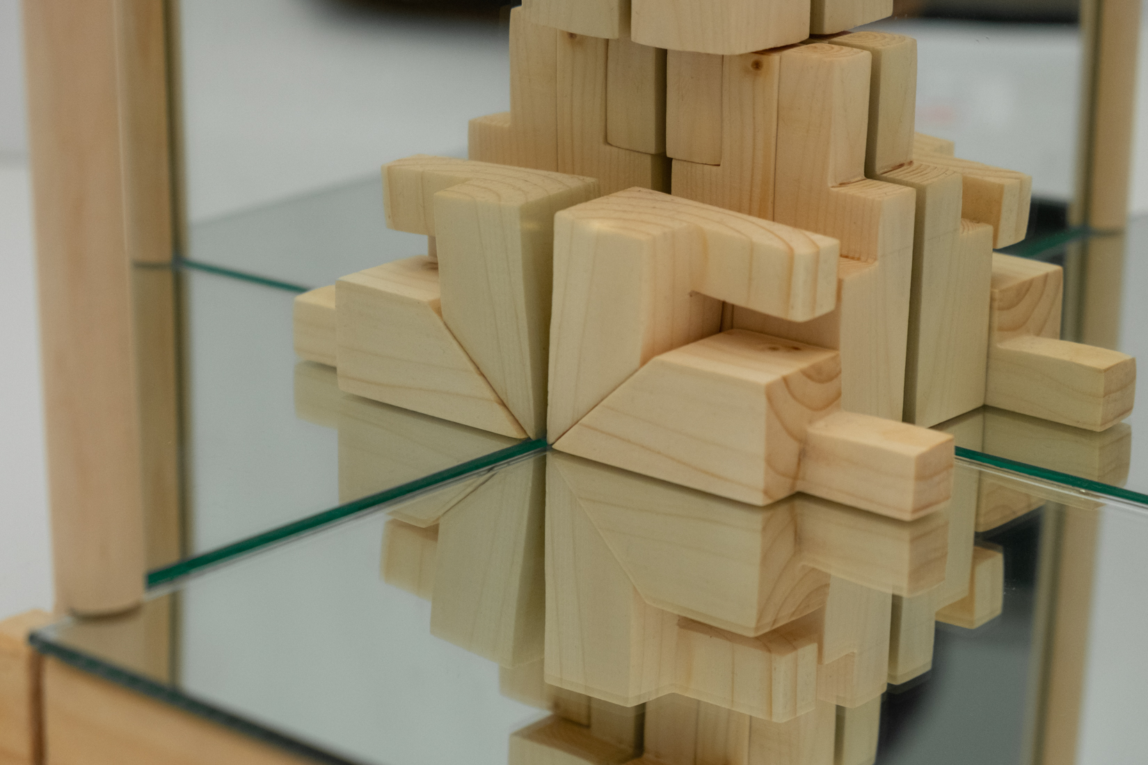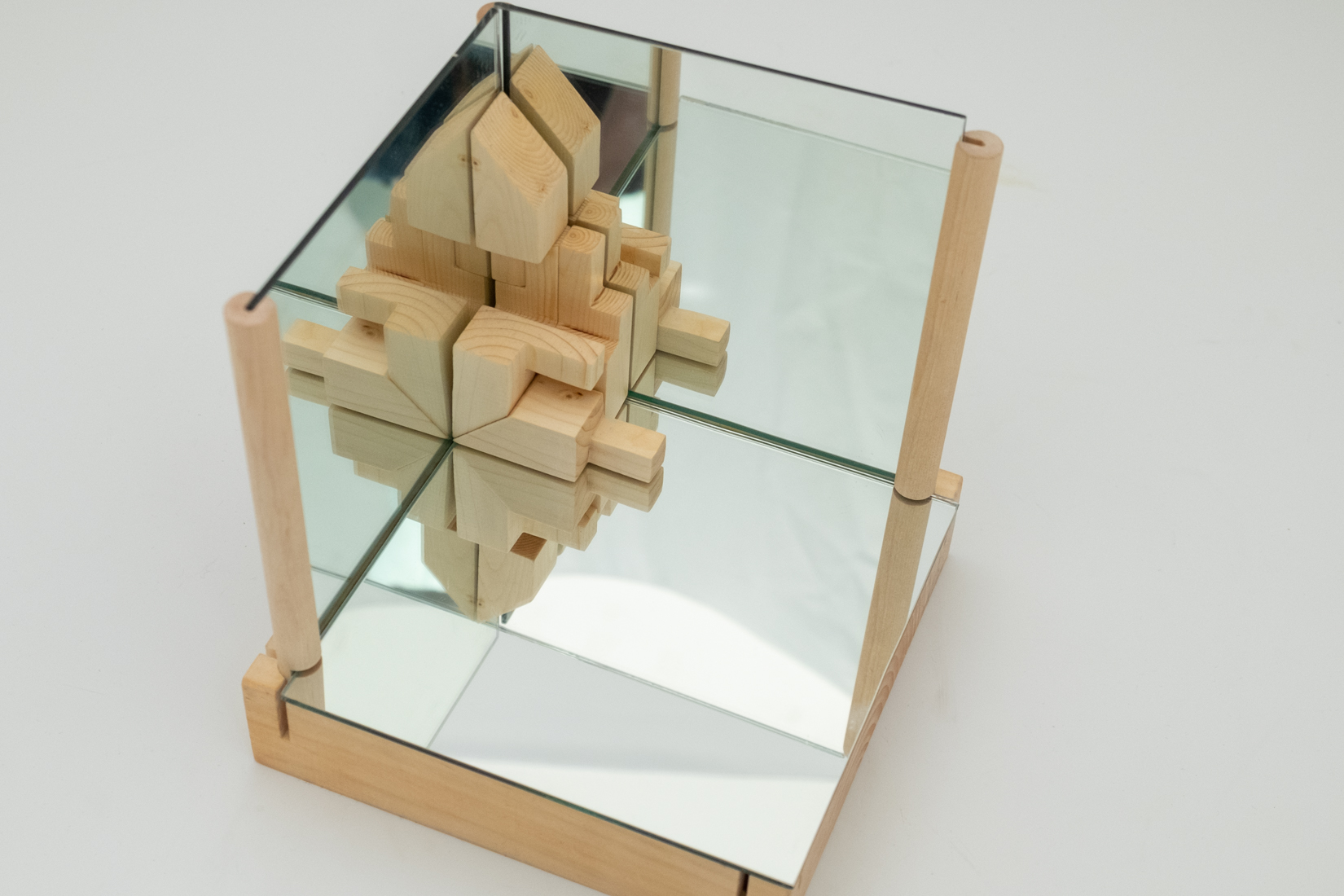 Shibui is made as a construction game and a tribute to the Japanese architect Tadao Ando using only waxed pine wood and mirrored glass, and incorporates no fasteners or adhesives. The objective of the game is to reconstruct silhouettes and drawings found on the cue cards using the provided wooden blocks in order to create a whole from a part.