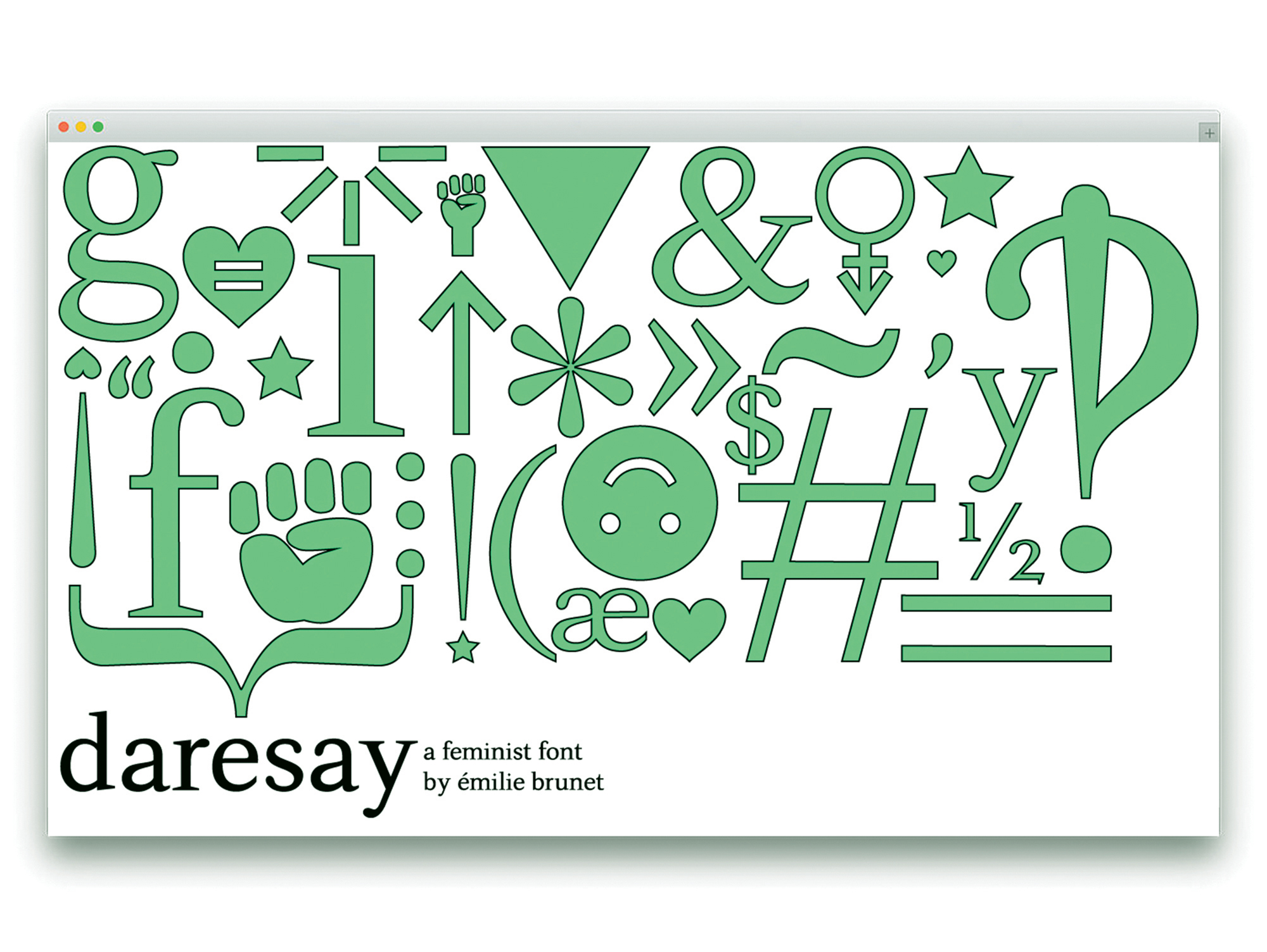 Daresay is an open-source unicase serif typeface that has the potential to communicate critical feminist voices by exposing hierarchies present in language and offering playful alternatives.