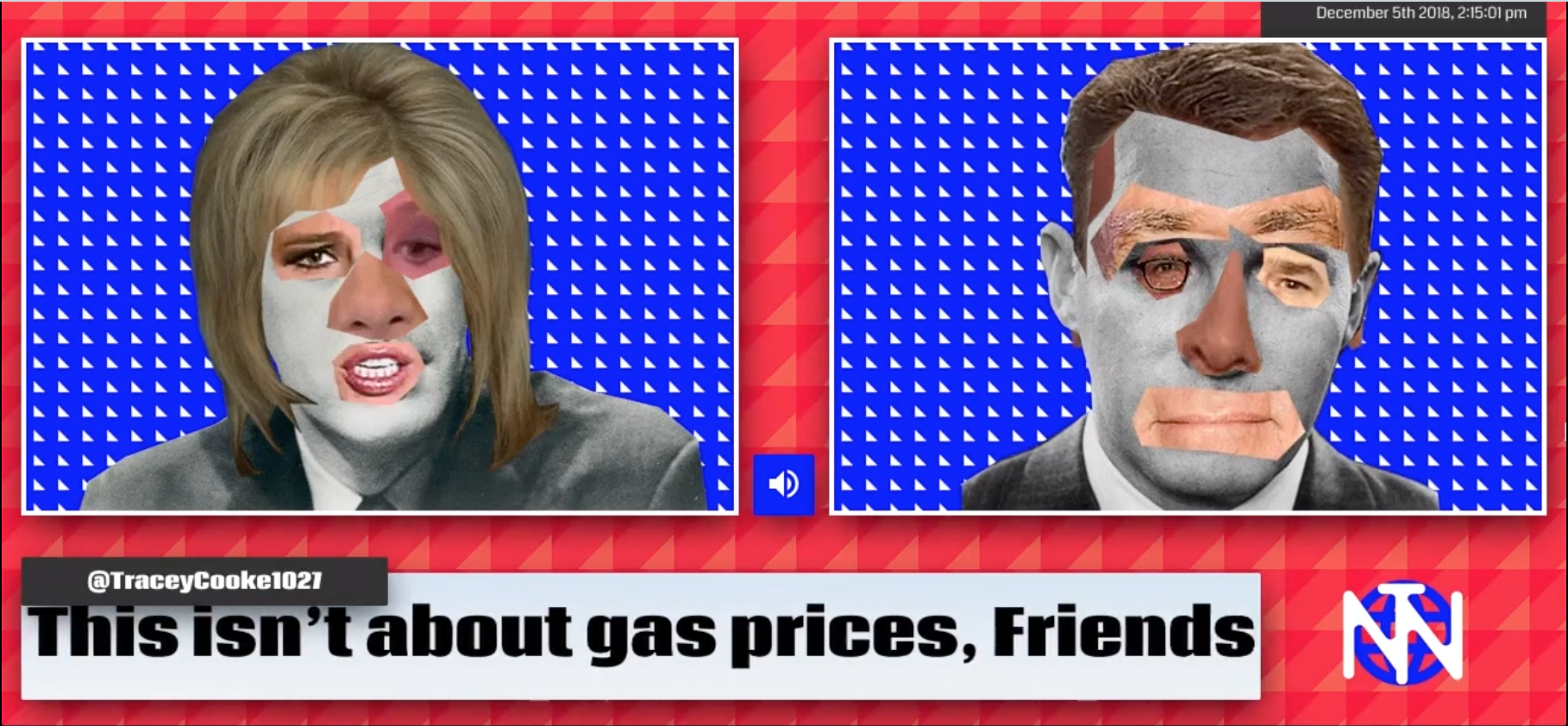 Talkinghead est une simulation d'émission de télévision de commentaires politiques qui s'appuie sur l'intelligence artificielle et 10 ans d'arguments politiques sur les réseaux sociaux pour répondre et débattre avec un utilisateur en temps réel. Les utilisateurs peuvent interagir avec Talkinghead en tweetant avec le hashtag #talkinghead pour obtenir une réponse.
